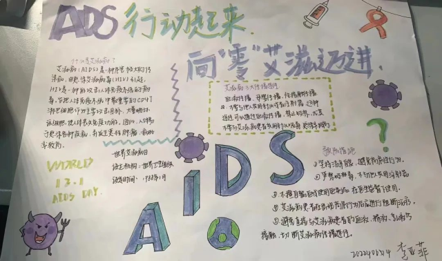 为了促进大学生对艾滋病的了解,使大学生崇尚科学,掌握大量的科学知识,变的不再盲从,2022年11月22日至2022年11月17日,太阳网集团tcy8722举办了以“行动起来,向‘零’艾滋迈进”为主题的手抄报征集活动,20级,21级,22级学生积极踊跃参加。