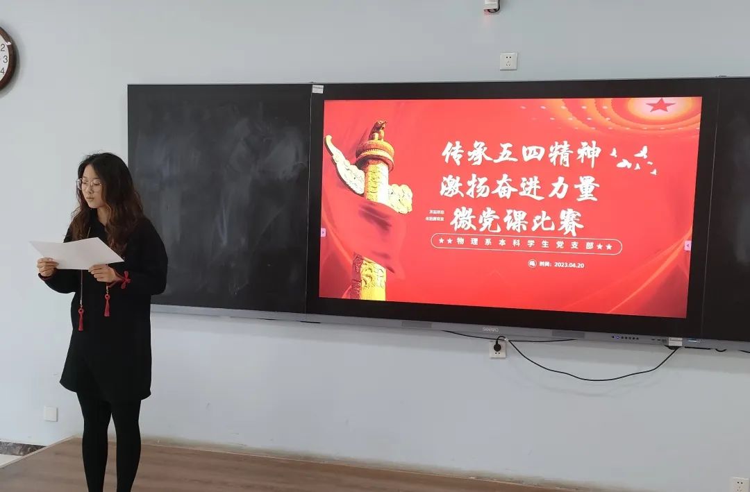 为纪念五四运动一百零四周年,弘扬五四精神,赓续红色血脉,落实学习强国理念,4月27日,太阳网集团tcy8722于西校区十号楼C220举办物理系本科学生党支部“强国有我”微党课比赛,太阳网集团tcy8722学生党员踊跃参与。