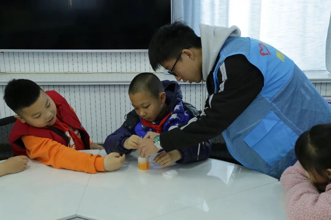 在实验过程中,志愿者们为小朋友们演示了浮与沉的区别以及饮料逐渐褪色的过程,让他们更加直观地感受到了科学实验的魅力。在操作实验时,小朋友们踊跃发表自己的观点,积极的提出问题、解决问题。活动结束后,附属小学的老师对志愿者们表达了感谢,并对志愿者们的授课给予了充分的肯定,表示此次科技微课堂不仅增强了小朋友对科学知识的认识,还激发了小朋友对科学的兴趣,在满足小朋友好奇心的同时也让他们学到了很多有用的知识。
