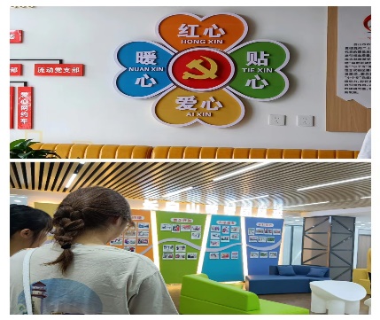 在吉林两新党建长白山红色孵化基地,讲解员首先强调了它既是全省基层党建的重点工程项目,也是推动该市两新太阳集团的重要载体。在这个集孵化组织、孵化人才、孵化企业、孵化项目于一体的孵化基地,实践队员们参观了永不落幕的红博会、直播间、路演舞台、爱心积分超市(红心、暖心、爱心、贴心)、长白山帮帮团,在讲解员的解说下、在与产品的深刻接触下以及在制片人对动画制作的展示下,实践队员们深刻感受到了“两新”党建引领,推动”两山”转化,是推动新时代白山全面振兴的”助推器”,是红色基因的传承,是时代发展的新篇章。