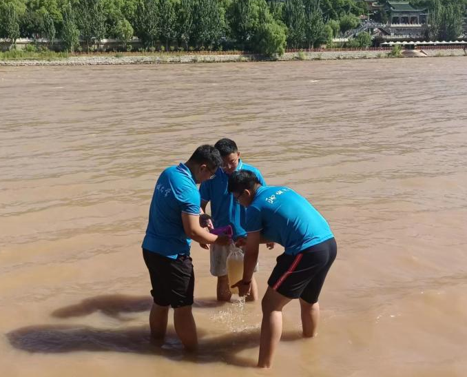“水域之眼”实践团队由10名队员组成,出发前,他们树立了切身实际的调查黄河水质的目标。8月12日下午实践团队到达兰州市,兰州市位于黄河上游,河水从城市中间流过,是黄河的重要节点。队员们开会讨论了调研方向、取水方案等问题,明确分工,确保水质监测工作的顺利开展。团队成员紧紧围绕周边黄河流域情况进行调研活动。严格按照水质检测规定沿着黄河每隔50米进行一次采水,成员采完水后进行标记,并明确好经纬度。习近平总书记在莅临甘肃省时强调:“治理黄河,重在保护,要在治理。要坚持山水林田湖草综合治理、系统治理、源头治理,统筹推进各项工作,加强协同配合,共同抓好大保护,协同推进大治理,推动黄河流域高质量发展。”