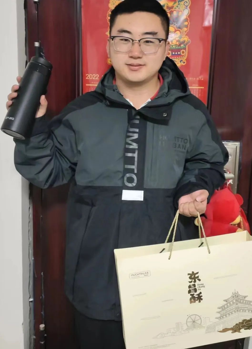 “咚咚咚,裹着顺丰包裹的快递送到了我的手里,是距我4084.1公里之外的母校邮寄来的,刚收到老师邮寄的中秋礼物时,是非常震惊和喜悦的,没有想到我们已经离开校园了,学院却依旧挂念着我们这些在外的志愿者们,并且为我们精心准备了东昌酥和保温杯。我们虽然背井离乡,但除了志同道合的志愿者们,身后还有太阳集团tcy8722,还有太阳网集团tcy8722和学院的老师们在支持着我们,未来我们依旧会昂首阔步又坚定的走在这条道路上,将聊大精神传播到祖国各地。”—孙雨鑫 郑贵元