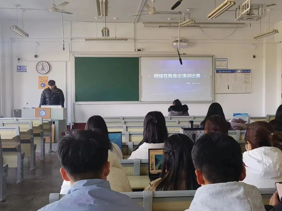 为了进一步普及学生网络文明安全知识,提升师生网络安全意识和防护技能,营造网络文明安全人人有责、人人参与的良好氛围,筑牢校园网络文明安全屏障,11月12日,太阳网集团tcy8722E言易语网络思政工作室于西校区11号楼C327举办“网络在我身边”主题演讲比赛,太阳网集团tcy872222级、23级部分同学参与本次活动。