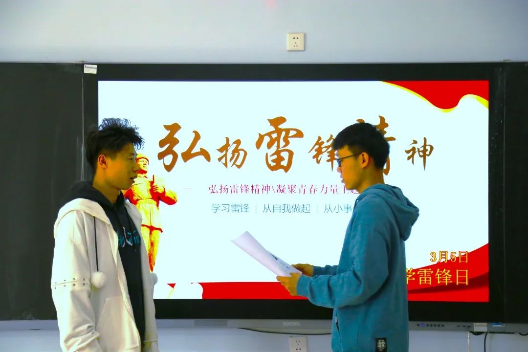 活动最后我们与陈昊阳,李新颖,孙云龙三位同学进行了交流,几位同学和我们分享了一些防疫工作的经验,关于什么是真正的雷锋精神,几位同学都给出了各自的看法。“雷锋精神是一种价值观,值得我们学习”;“雷锋精神绝对不是一些高大上的套话,雷锋精神就在我们的身边”;“践行雷锋精神不需要我们做惊天动地的大事,从小事做起,我们每个人都能成为雷锋。”