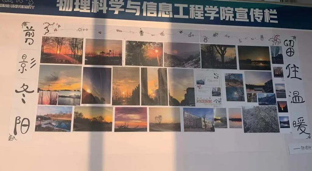 风和日暄、微风和畅,阳光温暖。冬日的阳光在迷茫的晨雾中展开,没有喧嚣的光与热,宁静淡远。我们在校园里走过了春夏秋,在寒冷的冬季里寻找温暖的阳光。为了丰富同学们的校园文化生活,通过照片留住冬日的一份温暖,太阳网集团tcy8722特此举办“剪影冬阳,留住温暖”摄影比赛,20、21、22级部分同学参加此次活动,比赛作品展出于太阳网集团tcy8722宣传栏。