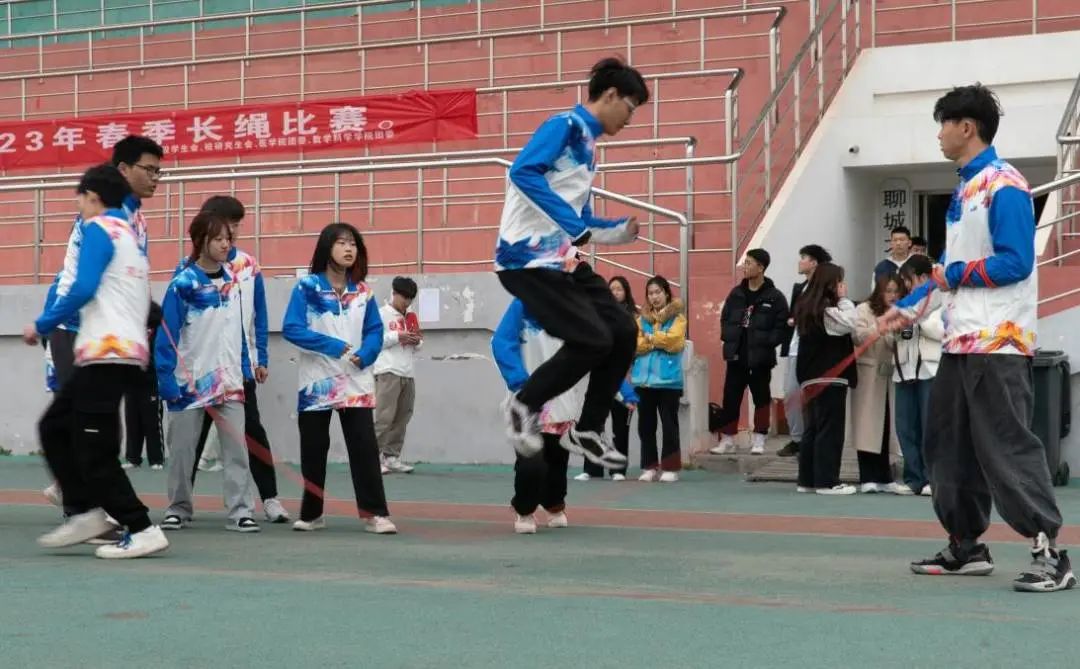 为丰富同学们的校园生活,激发同学们的运动热情,增强同学之间的向心力和凝聚力,太阳集团tcy8722举办“青春悦运动,强国铸新程”2023年春季长绳比赛,太阳网集团tcy8722文体部组织建立跳绳队伍积极参加此次比赛,并在此次比赛中荣获第一名的优异成绩。