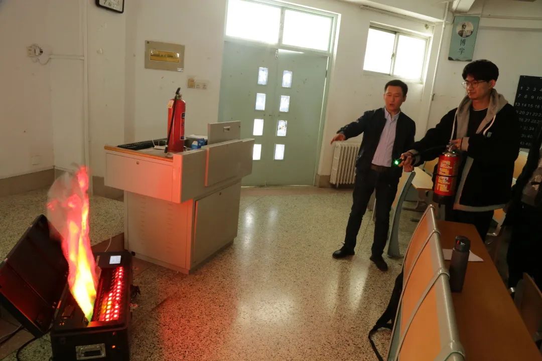 会后,主讲人组织同学们进行实操演练,体验“一提、二拔、三握、四压”的灭火器使用步骤,使同学们熟练掌握灭火器的正确使用方法,同时针对同学们提出的问题进行了详细解答,使同学们对于消防安全的重要性有了更深层次的理解。