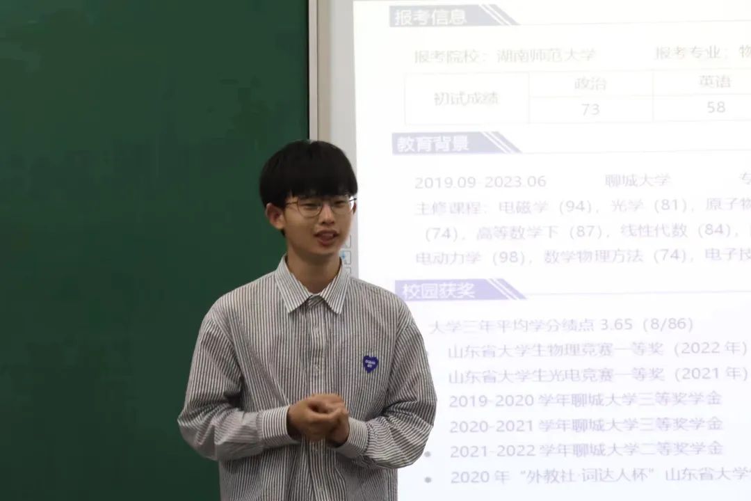 为了进一步提高同学们的考研热情,帮助同学们明确考研目标,掌握考研技巧,了解更多考研信息,5月7日,太阳网集团tcy8722于十号楼c321召开物理学专业考研交流会,2020级、2021级、2022级部分同学参与本次交流会,2019级优秀学生代表聂申奥、于丽霞、代雨晴、李雨辰担任本次交流会的主讲人。