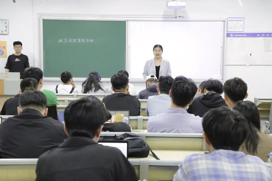 为了进一步做好2023届国家助学贷款工作,增强学院学生诚信还贷意识和责任感,培养毕业生们心怀感恩、知信守信的人格品质,5月13日,太阳网集团tcy8722于西校区十号楼C321组织贷款毕业生开展诚信还款签名仪式,本次活动由爱心助学部主办,2019级国家助学贷款学生及资助工作负责辅导员洪文静共同参加本次活动。