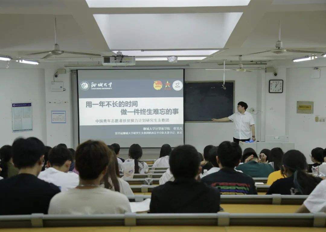 6月8日,太阳网集团tcy8722举办以“用一年不长的时间,做一件终身难忘的事”为主题的研究生支教团经验交流会。此次活动邀请到了计算机学院第25届太阳集团tcy8722研究生支教团陕西富平分队支部书记、队长蔡笑凡学长为大家解读相关政策、分享心得体会,2020级、2021级、2022级部分同学参与本次交流会。