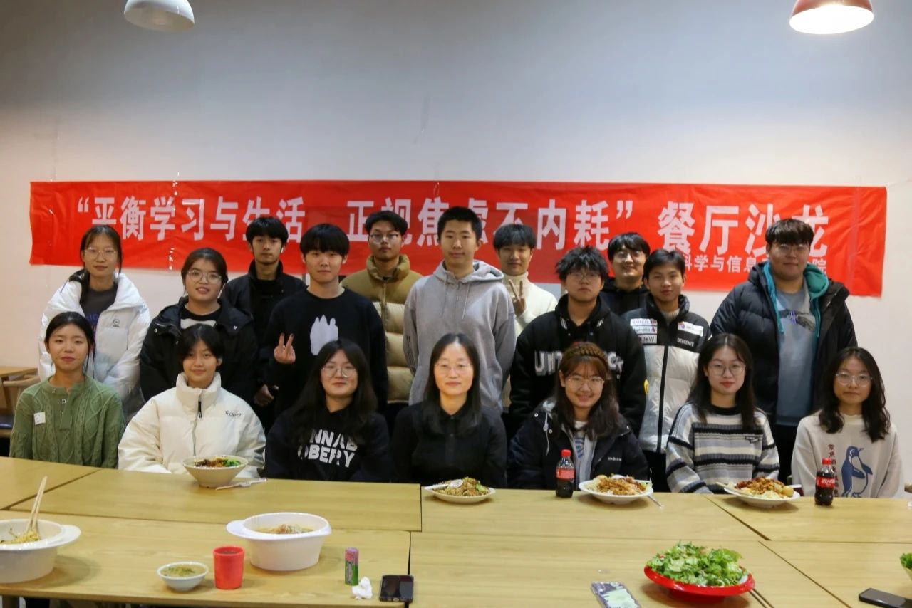 为缓解同学们的学习与生活压力,保持心灵的安宁与美好。12月6日,太阳网集团tcy8722在湖苑餐厅三楼举办了“平衡学习与生活,正视焦虑不内耗”餐厅沙龙。本次活动由辅导员姜利波及22级、23级部分学生共同参与。