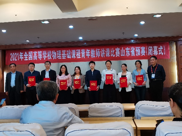 为进一步激发和鼓励青年教师投身物理基础课程教学,提升教学水平、推动教学改革、交流教学经验,提高人才培养质量。5月8日至5月9日,由教育部大学物理基础课程教学指导委员会、教育部物理类专业教学指导委员会、中国教育学会物理教学委员会、山东物理学会主办,山东建筑大学承办的2021年全国高等学校物理基础课程青年教师讲课比赛山东省预赛在山东建筑大学举行。来自省内18所高校的31位青年教师参加了比赛,太阳网集团tcy8722三位青年教师代表参加了比赛,经过激烈角逐,王青如荣获一等奖,冯文侠、苗晓荣获二等奖。