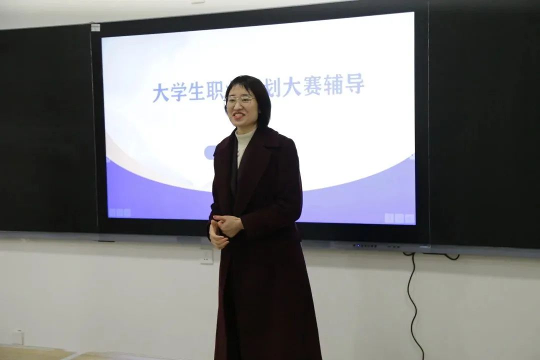接着,陶珊珊为同学们系统展示了参赛项目的基本流程与作品框架,深入解读专业与职业的关系,抛出了是安身还是立命这一值得深思的问题。最后,她强调了职业的个人价值与社会价值,就问题、方向、使命这三方面指引同学们寻找现场展示中意义升华的途径。