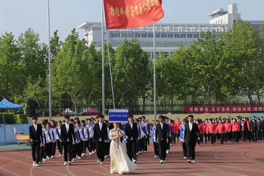4月27日,学校2023年春季运动会于西校区南田径场隆重召开。上午八点整,参加开幕式方队的理工师生们身着院服,齐声呐喊“理工理工,气势恢宏,文韬武略,校兴我荣!”于主席台前整齐走过。步履铿锵,眼神坚定,尽显学院风采。