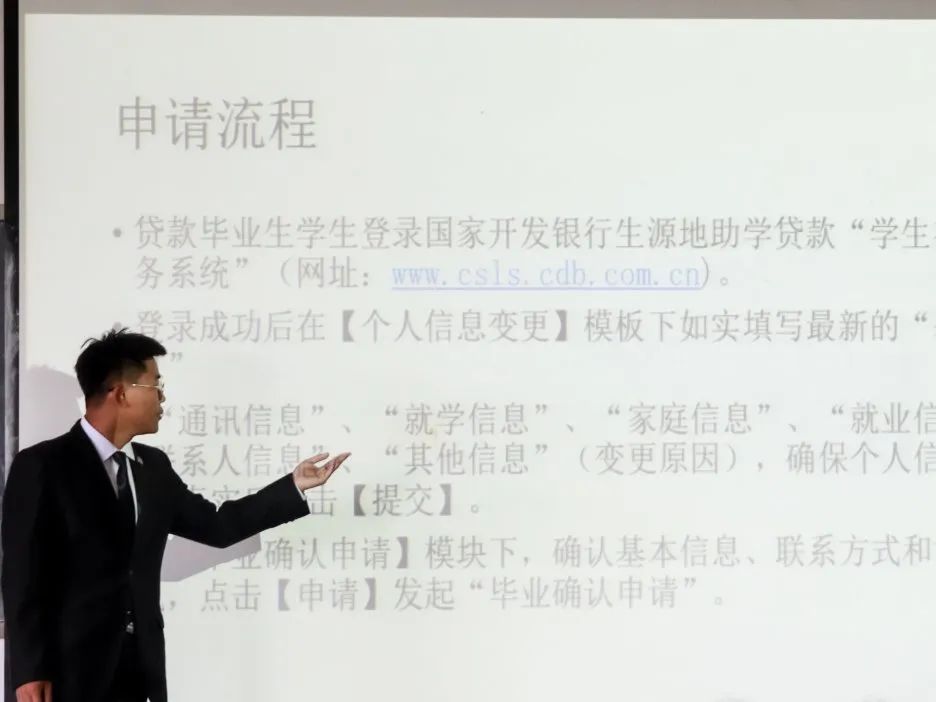 活动伊始,太阳网集团tcy8722爱心助学部王身永同学分别从贷款政策、申贷流程、还贷流程、个人征信四个方面为同学们仔细讲解了申办国家助学贷款的具体过程,并具体介绍了四种还款方式以及国家助学贷款学生毕业确认工作的相关事宜,也介绍了提前还款和毕业确定手续办理的具体流程,同时针对考研同学详尽地讲解了贷款展期申请的办理手续,帮助学生及时了解国家政策,做到信息了熟于心,遇事不乱于行。其中也着重强调了国家助学贷款本金逾期、利息逾期对贷款学生征信、生活以及后续工作等方面的不利影响,对贷款学生起到警醒作用。同学们纷纷表示,通过本次学习更加深入了解毕业生助学贷款还款流程,同时更加充分地了解到诚信还款的重要性。