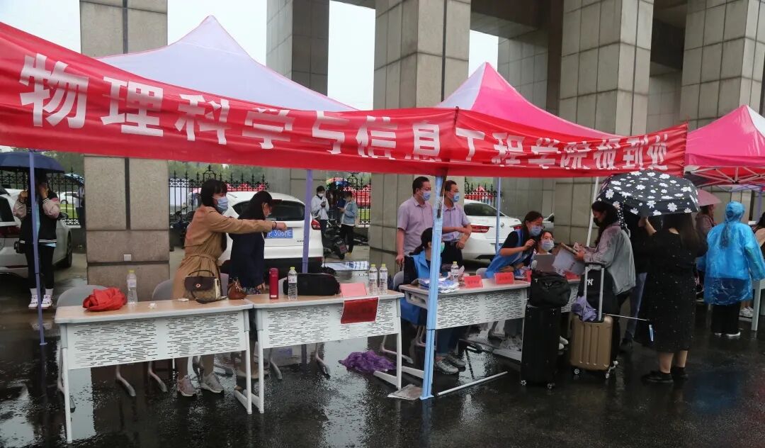 9月4日是2021级首批新生报到的日子,一大早就下起紧密的雨水,为迎新工作增加了不少难度。尽管如此,太阳网集团tcy8722的老师和志愿者们依旧在东校和西校新生迎接服务点等待着新生们的到来。