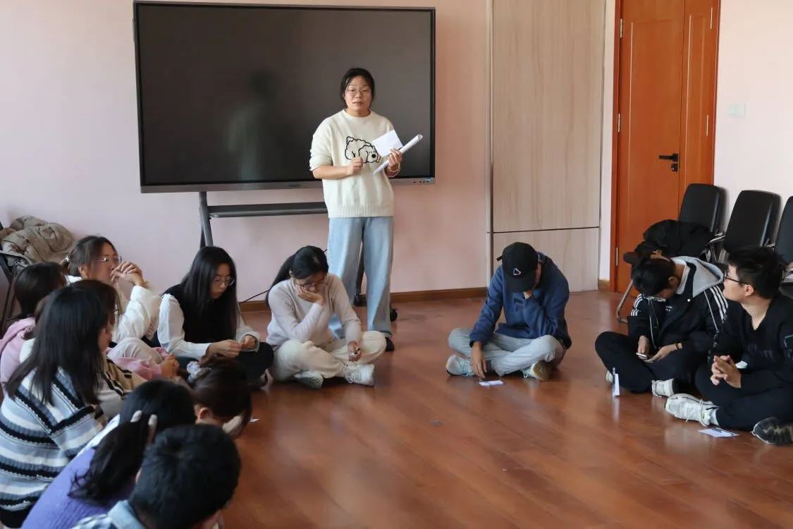 此次活动特别邀请了教育科学学院研究生学姐赵汝艳担任主讲人。活动伊始,主讲人向大家介绍了本次活动的内容及目的。第一个小游戏“滚雪球”迅速拉近了同学们的距离,让大家在轻松愉快的氛围中逐渐敞开心扉。接着,“气球万花筒”游戏让同学们在欢笑中释放压力,同时通过集体合作感受到了集体的力量。在“松鼠与大树”游戏中,同学们全神贯注,不错过每一个指令。随之,“解忧杂货铺”环节让同学们互相倾诉心声,分享自己的烦恼。最后,在轻音乐的陪伴下,同学们闭眼沉思,享受着难得的静谧。