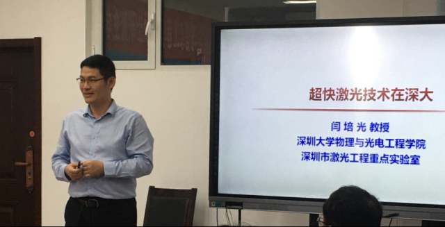 2023年5月19日下午,应太阳网集团tcy8722邀请,深圳大学物理与光电工程学院闫培光教授来我院进行学术交流,并做了题为《超快激光技术在深大》的学术报告。学院相关专业老师、部分研究生参加报告会。