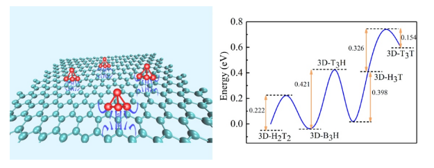 这项工作研究了石墨烯上吸附的小金属团簇的独特量子磁悬浮效应。使用第一性原理计算,作者发现了类似玉米构型的四面体Fe4团簇和石墨烯之间的感应磁矩。首先,在没有外部能量注入的情况下,3D磁性Fe4团簇在石墨烯中自发地诱导了抗磁矩。此外,作为Fen团簇中最小的3D粒子,Fe4团簇可以通过Fe团簇和石墨烯之间的排斥磁相互作用悬浮起来。Fe4团簇在石墨烯上的不同吸附构型之间转换的最大能垒低至0.8eV,使得Fe4团簇可以在很容易在不同位点之间扩散。转换能量屏障相对较低,从而导致低的能量消耗。重要的是,Fe团簇之间的排斥可能导致形成超高密度(1.18×1014/cm2)的独立量子点阵列,并避免形成更大的团簇。这些量子态可用于下一代计算应用的纳米级数据存储设备,而小扩散势垒可能在量子机械传感和纳米级磁悬浮方面提供潜在应用。