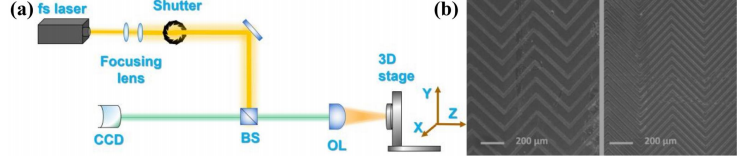 图1器件电子显微镜图及太赫兹探测实验系统示意图