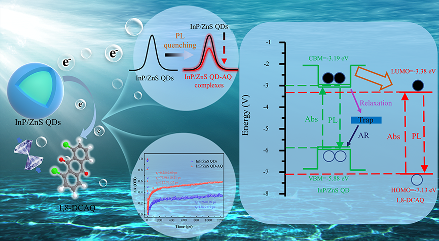电子转移速率的调控对提高电子转移系统的光电转换效率至关重要,近年来逐渐成为研究热点。刘才龙教授团队利用高压原位瞬态吸收光谱探测技术,提出了压力调控甲苯中InP/ZnS量子点-蒽醌(InP/ZnS QD-AQ)复合体系电子转移的影响机制。研究表明,从常压至0.9GPa,压致供-受体间距的减小可以有效促进InP/ZnS QD-AQ复合体系的电子转移过程;从0.9GPa至2.1GPa,InP/ZnS QD-AQ复合体系的电子转移过程被抑制是压致InP/ZnS量子点的量子限域效应和蒽醌分子的压致AIE效应共同作用的结果。此项工作为基于供-受体复合体系光电器件的发展提供理论依据,并将促进其在光电转换领域中的应用。相关成果以“Electron transfer tuned by pressure-dependent aggregation-induced emission in InP/ZnS quantum dot-anthraquinone complexes(通过压力依赖的聚集诱导发光调控InP/ZnS量子点-蒽醌复合体中的电子转移)”为题发表在《Applied Physics Letters》(《应用物理快报》)国际期刊上。2021级硕士生秦霞霞和张海娃博士为论文共同第一作者,楚亚博士、王庆林教授、郑州大学郭海忠教授和刘才龙教授为共同通讯作者,太阳集团tcy8722为第一署名单位。